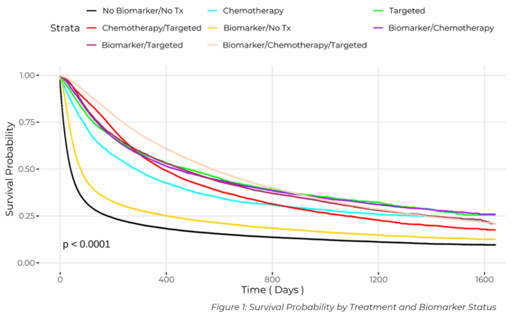 Using our CLEAR claims database, we explored testing and treatment patterns and how they influenced outcomes for more than 167,000 patients. The findings were stark, yet surprising: patients who receive comprehensive biomarker testing and guideline-directed treatment live significantly longer.