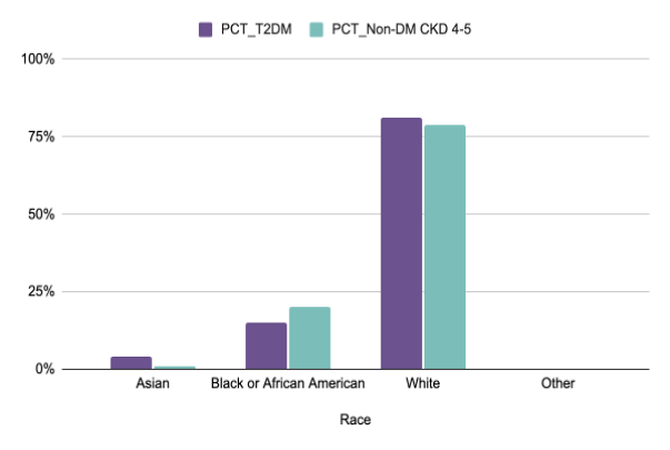 In comparing Type 2 diabetes (T2DM) patients to non-diabetic CKD patients, we uncover critical differences. Non-diabetic CKD patients tend to be older and more frequently female. A larger proportion of non-diabetic CKD patients rely on Medicare/Medicare Advantage, whereas more T2DM patients have commercial insurance. Certain regions have higher concentrations of one patient group over the other, affecting trial recruitment and commercial strategy.