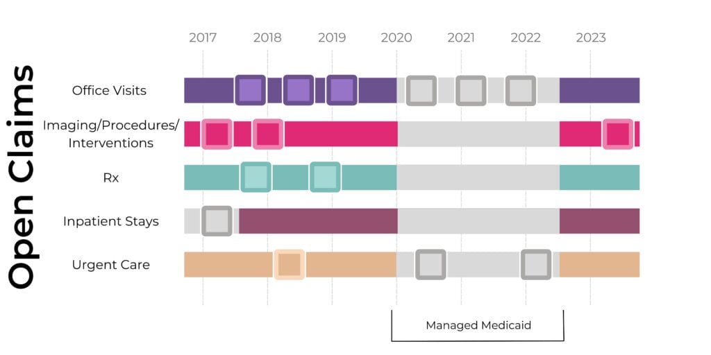 The other doctor the patient is seeing used a different clearinghouse and therefore the claims do not show up in the open claims set, however PurpeLab has coverage for this patient’s seen by this provider rather are in the closed claims data set. This leads to a gap in data capture and, if only looking at open claims, will not be seen. These kinds of discrepancies are common in open claims data which brings up a necessity for closed claims data.
